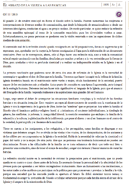 La Iglesia mantiene su posición en cuanto a la indisolubiidad del matrimonio y defiende la familia