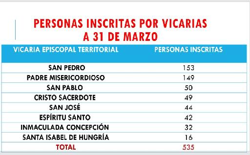 A 31 de marzo había 535 fieles inscritos: