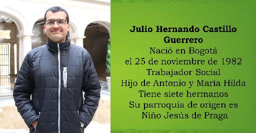 Perteneciente al Camino Neocatecumenal, luego de terminar su formación académica superior en Contaduría se decidió por la vocación sacerdotal y vino al seminario Redemptoris Mater de Bogotá.