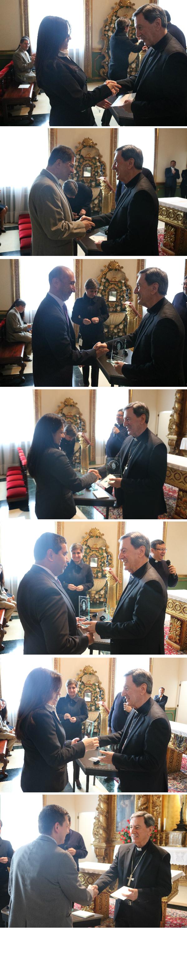 5 años de trabajo en la Curia Arzobispal: Alba Yaneth Ramírez Pulido, Leonardo Adelmo Silva Melo, Nayibe Rosas Galeano y  Fredy González.