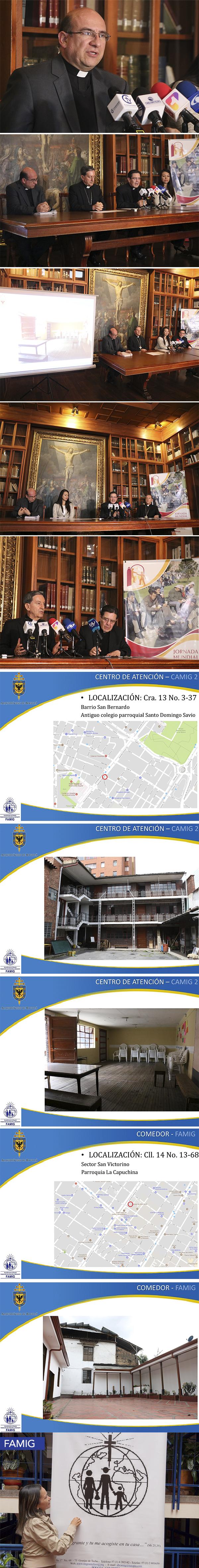 Los invitamos a escuchar, a continuación, la rueda de prensa con la intervención del señor cardenal Rubén Salazar Gómez, arzobispo de Bogotá; monseñor Jaime Mancera Casas, vicario episcopal para la Dimensión Social de la Evangelización; monseñor Álvaro Vidales, director de FAMIG y párroco catedral Primada y, por último, Katerine López, arquitecta de la arquidiócesis de Bogotá, encargada del desarrollo estructural y funcional de estos proyectos.