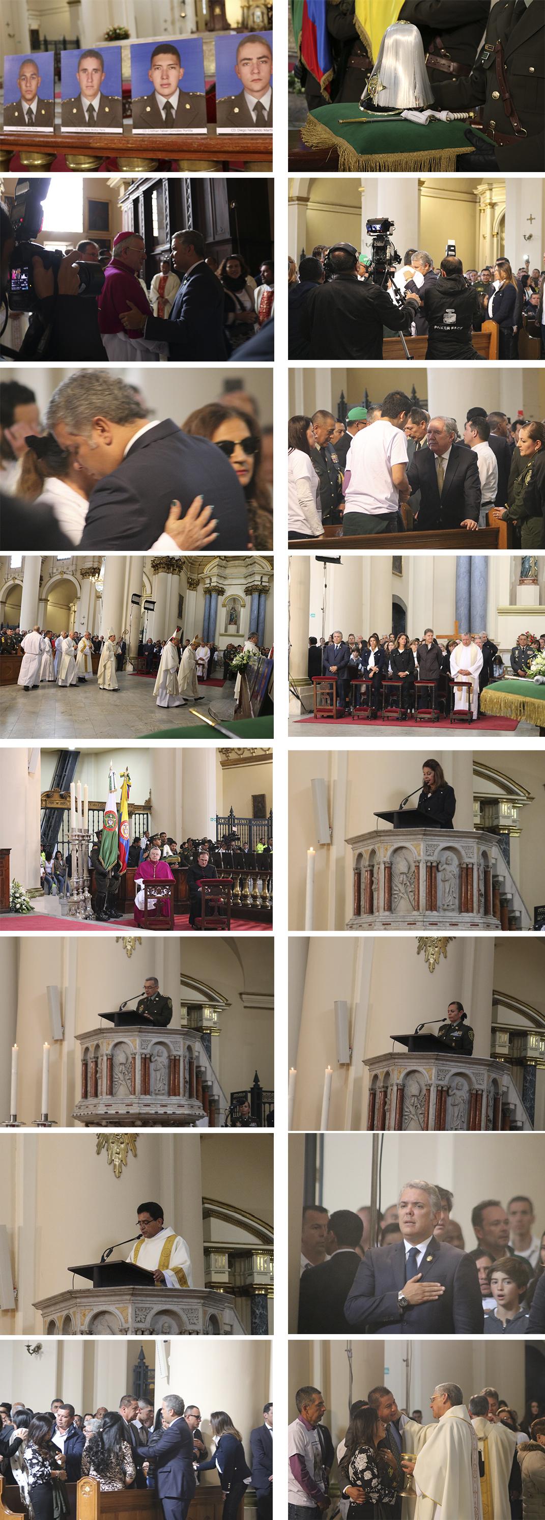 La Eucaristía fue presidida por el señor cardenal Rubén Salazar Gómez, arzobispo de Bogotá, Primado de Colombia y Presidente del CELAM, concelebraron el obispo castrense, monseñor Fabio Suescún Mutis y el Secretario de la CEC, monseñor Elkin Álvarez obispo auxiliar de Medellín; el padre Silverio Suárez, quien es general de la Policía; el padre Jorge Marín, párroco de la Catedral y muchos sacerdotes vinculados pastoralmente con la institución policial. Asistió el Nuncio Apostólico, monseñor Mariano Montemayor y el secretario de la Nunciatura, monseñor Matjaž Roter.