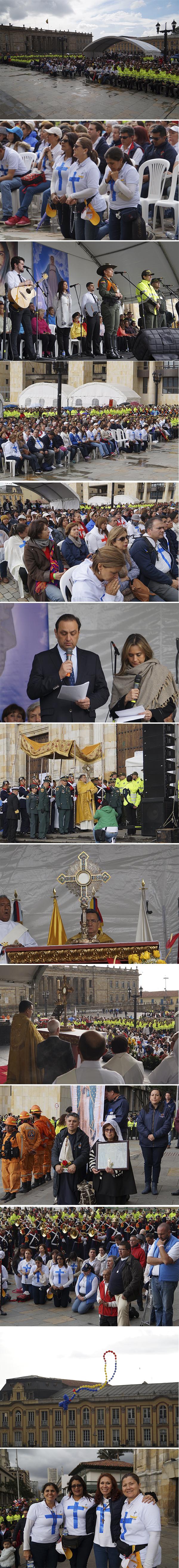 Y aunque no hubo lleno total en la Plaza de Bolívar, sacerdotes, diáconos, seminaristas, religiosos y laicos en general, junto a miembros de la Policía y la Guarda presidencial, de manera solemne y por supuesto activa, se unieron a esta gran jornada de oración por Colombia.