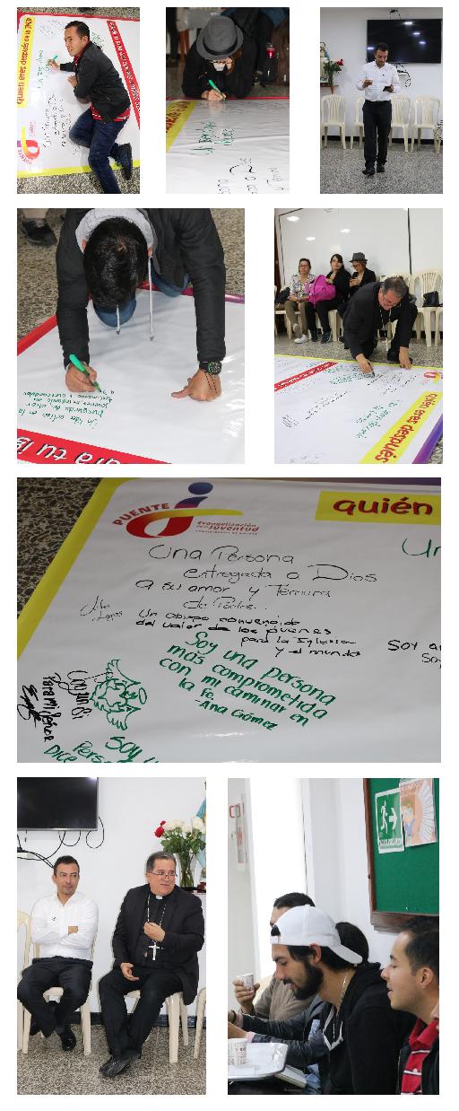 Dentro de las actividades programadas estuvo el escribir en un gran lienzo la respuesta dos inquietudes: ¿Quién eres después de la JMJ? Y ¿Qué quieres seguir siendo hoy para tu Iglesia? Los asistentes escribieron desde su corazón, incluso el obispo Pedro, con su particular sentido del humor, acompañó la actividad escribiendo lo suyo: “Un obispo convencido del valor de los jóvenes para la Iglesia y el mundo”.