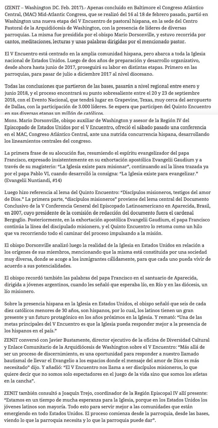 El V Encuentro de pastoral hispana en Washington, DC y en Baltimore con el Obispo Dorsonville