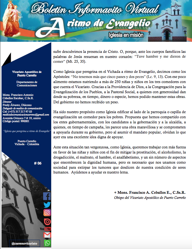 “Esto es solo una pequeña muestra de lo que está pasando con los indígenas en el departamento del Vichada, a quienes sólo se les tiene en cuenta en tiempo de elecciones. Los ilusionan con miles de promesas, los llevan a votar, les compran el voto por algunas bagatelas, y, después, los abandonan a su propia suerte”, expresó el prelado.