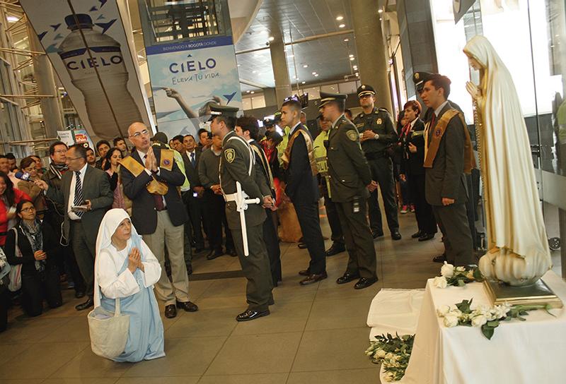 Custodiada por los jóvenes de la campaña: Colombia necesita de Fátima, Luis Fernando Escobar Duque, director del comité organizador, informó para Caracol Televisión y El Catolicismo, que Nuestra Señora de Fátima ha visitado más de 100 países y ha llegado a Colombia a darnos esperanza y a invitarnos para recibir su amor maternal “Ella nos ha dado la solución rezar el Santo Rosario”.