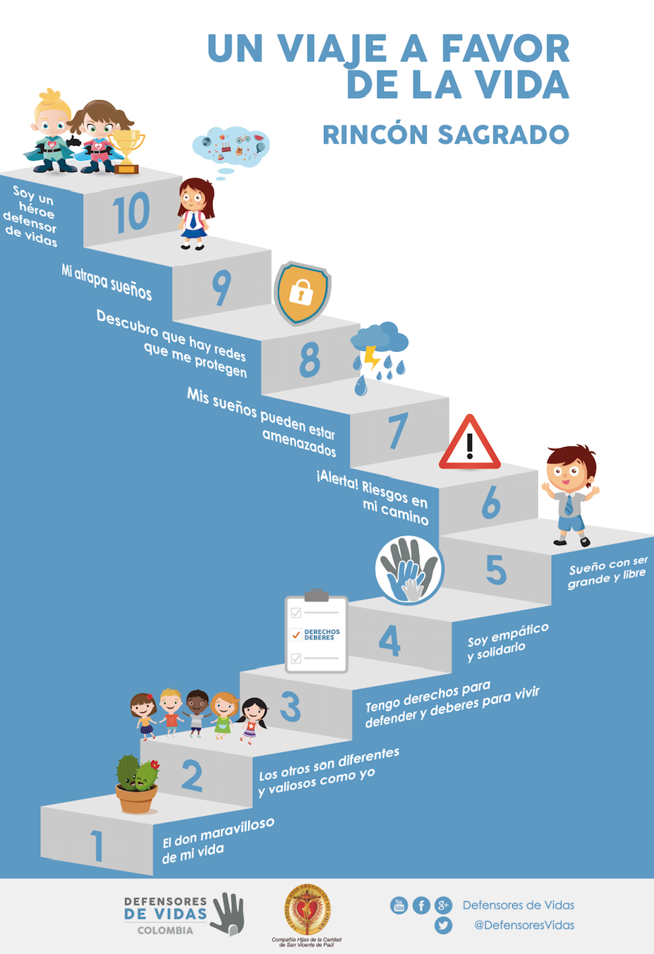 Con la mirada puesta en ellos, como el horizonte inspirador de nuestro quehacer, hemos diseñado para este año el lanzamiento de la cartilla de prevención “Un viaje en favor de la vida” que busca empoderar a las niñas y a los niños, de cuarto y quinto grado de educación primaria, para que se conviertan junto con sus padres/madres, docentes y cuidadores inmediatos, en Defensores de sus vidas, de la vida del planeta y de la vida de sus hermanos y hermanas.