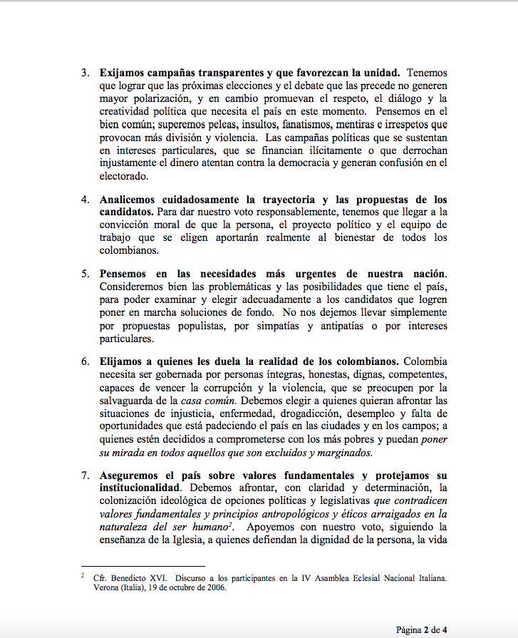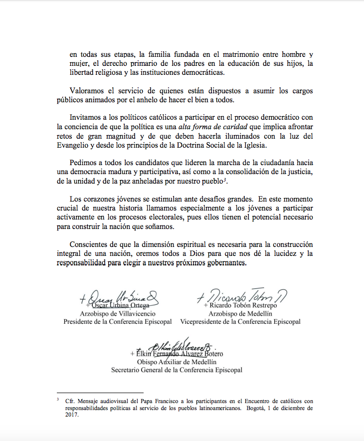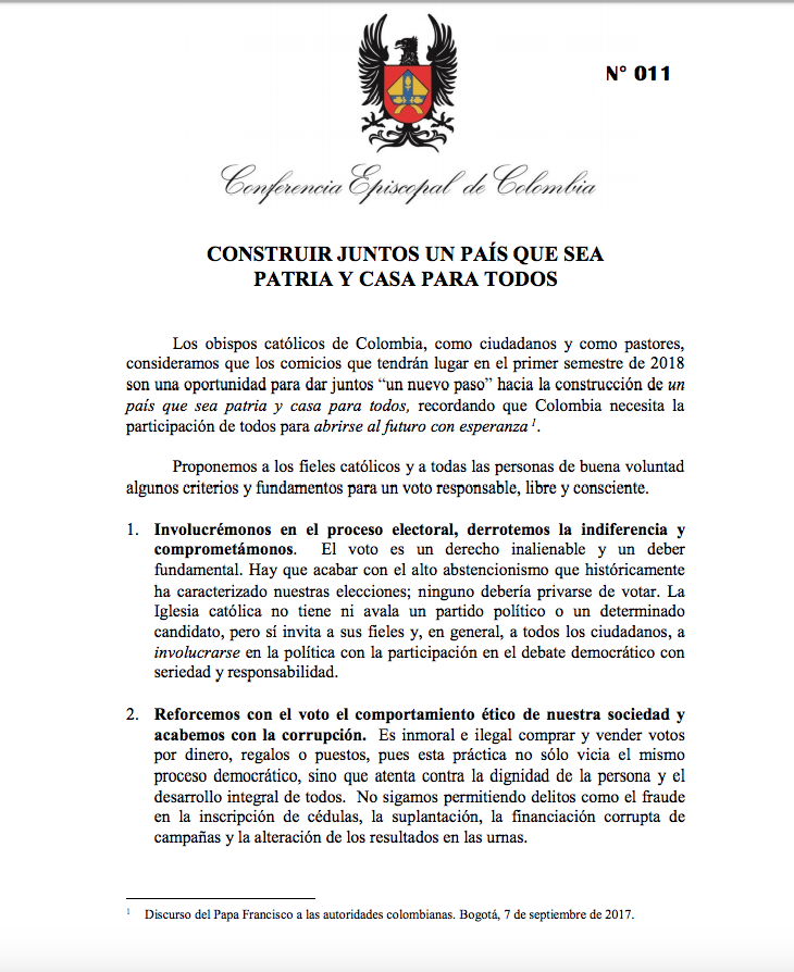 Los obispos católicos de Colombia recuerdan a todos los fieles que, como ciudadanos y como cristianos, debemos votar consciente, libre y responsablemente