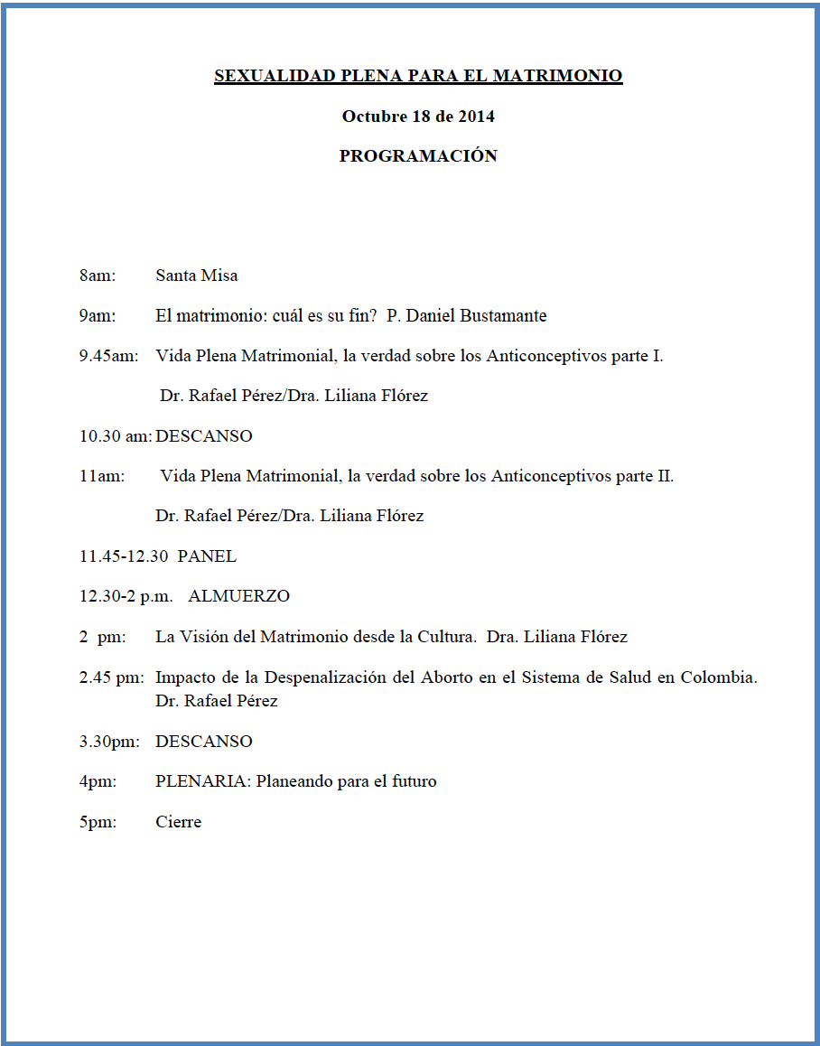 Este congreso va dirigido a: Sacerdotes, profesionales de la salud, coordinadores cursos prematrimoniales, movimientos apostólicos de familia, matrimonios y a todos los interesados en defender la apertura de la vida en el matrimonio.